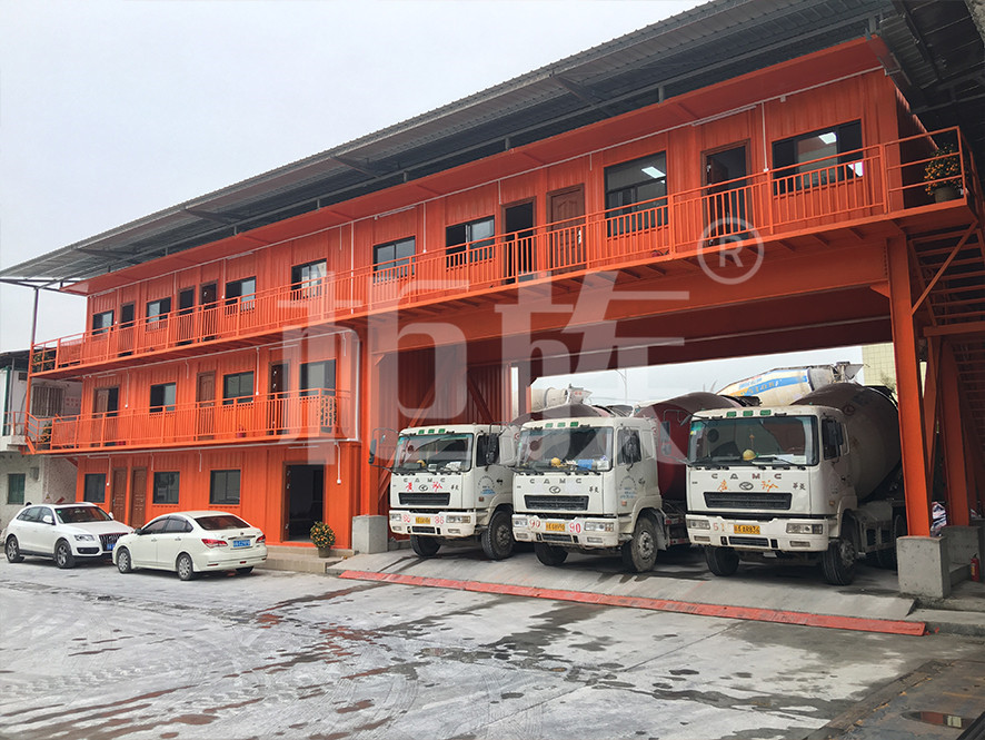 集裝箱與鋼結(jié)構(gòu)組合建筑。三層室內(nèi)面積共392平方米,辦公和居住空間都較為充裕。